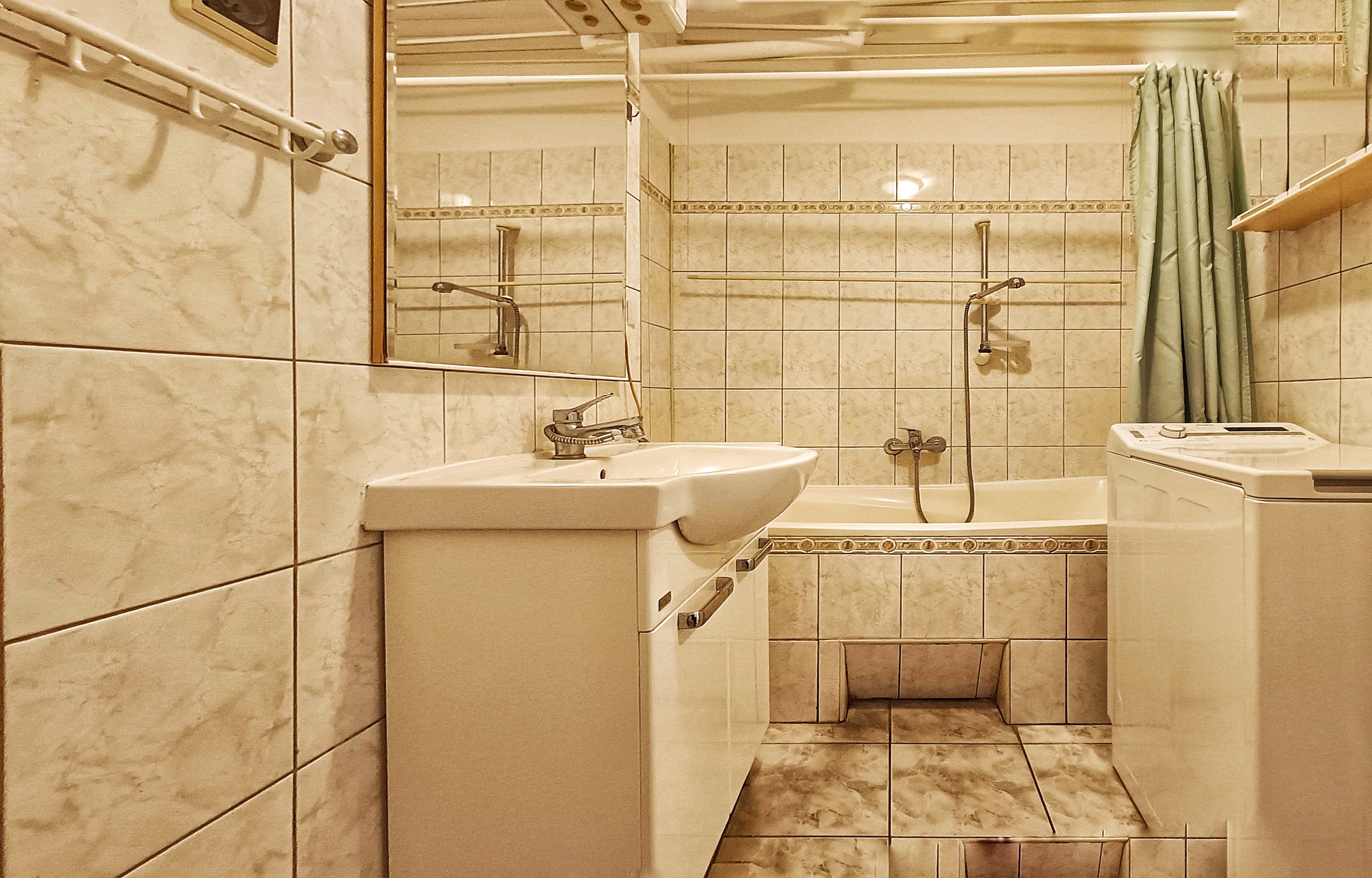 - na podłogach panele i terakoty